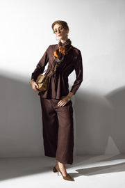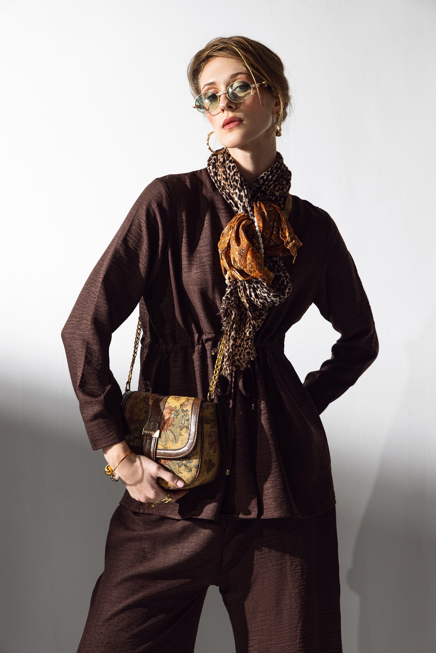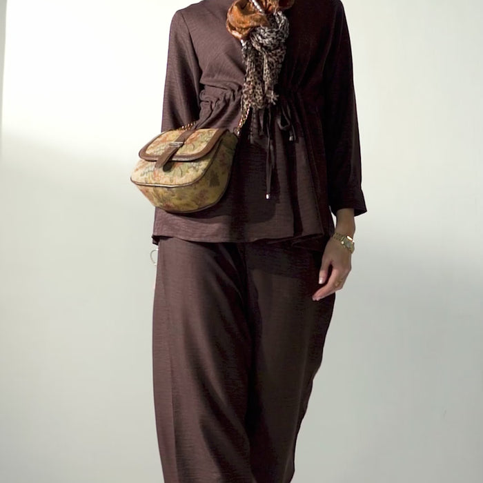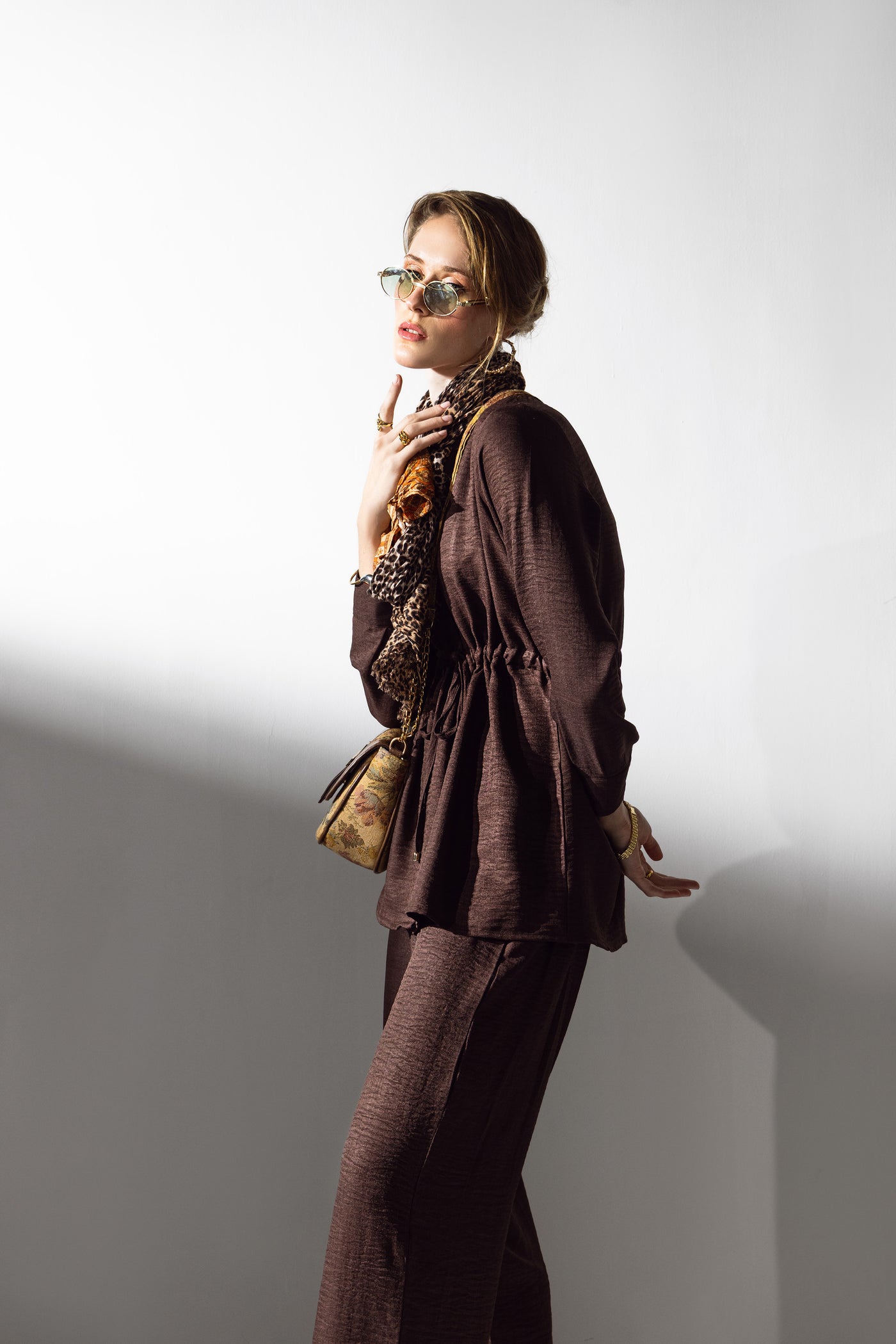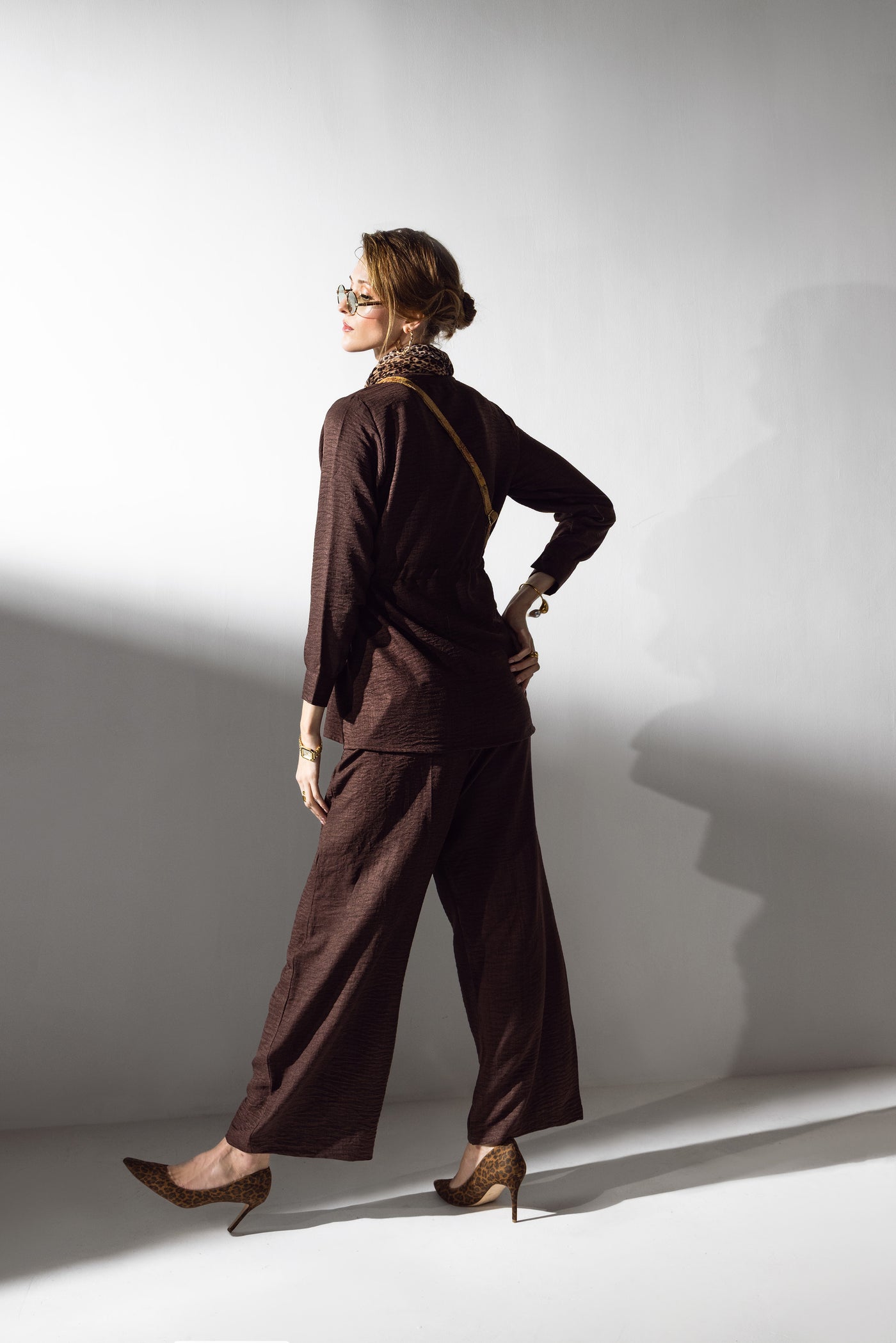 Crafted in a rich espresso brown tone, this set transitions effortlessly from daytime wear to elevated evenings. Style it together for a clean, confident statement or wear each piece separately for versatile outfitting.